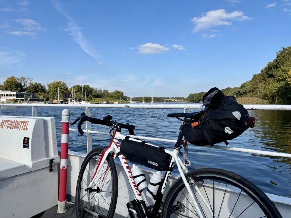 Anschließend ging es mit sanftem Rückenwind durch leicht hügeliges Gelände durch das Gebiet der Schlei. Bei Missunde überquerte ich mit der kleinen Fähre das Wasser – inzwischen schon zum zweiten Mal. Bereits bei meiner Deutschland-Tour 2022 bin ich hier entlanggekommen.