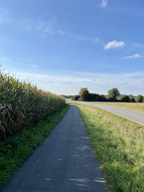 Ungefähr bei Kleve änderte ich meine Route komplett. Statt wie geplant 260 Kilometer entlang des Wassers bis nach Hamburg zu fahren, steuerte ich in südöstlicher Richtung nach Itzehoe. Das verkürzte die Route um gute 90 Kilometer – und ersparte mir jede Menge Gegenwind und Zeit.