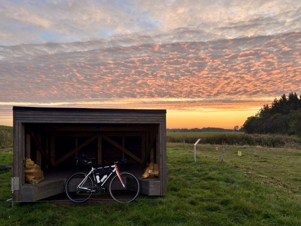 Meinen Shelter in Tøndermarsken, Dänemarks größtem Sumpfgebiet, hatte ich mir vorab gebucht. Die Lage war wirklich großartig. Am Shelterplatz gab es zwei Hütten, die sich um 360 Grad drehen ließen. So konnte man den perfekten Blick auf Sonnenauf- und Sonnenuntergang einstellen.