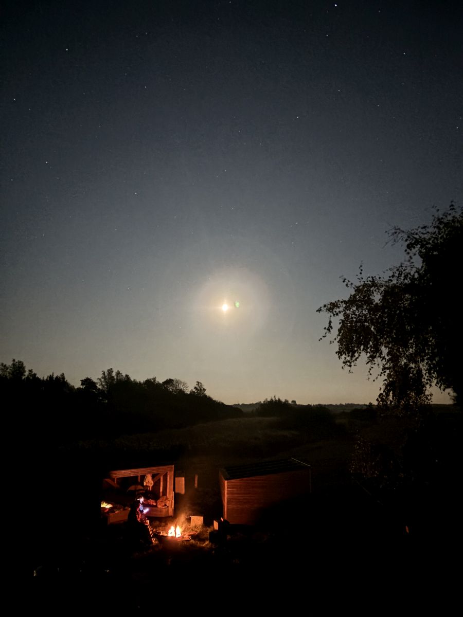 Nachdem die Sonne untergegangen war, setzte ich mich noch einige Minuten ans Feuer. Das hatten zwei „ältere“ – ich schätze sie auf bestimmt 60 Jahre – Damen aus dem Nachbar-Shelter bereits angemacht. Zwei Freundinnen, eine Dänin und eine Deutsche, die „immer mal wieder für ein Mikro-Abenteuer gemeinsam sheltern gehen“. Sehr cool!