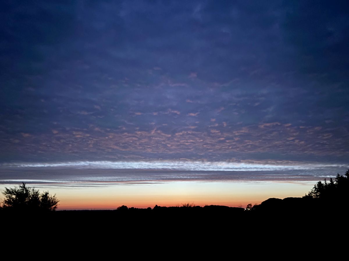 Genau diesen Sonnenuntergang konnte ich nun – während ich mein Schwarzbrot mit Käse aß – genießen. Als besonderes Highlight zeigten Tausende Stare ihre beeindruckenden Flugmanöver. Es war wirklich unfassbar schön. Genau solche Momente sind es für mich, die das Draußensein ausmachen.